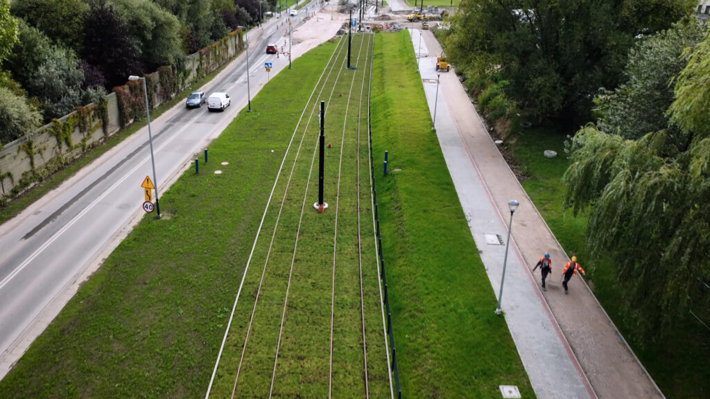 In Kraków, green tram tracks can already be seen on many sections, for example between Rondo Grzegórzeckie and Mały Płaszów, or between Grota-Roweckiego and the Czerwone Maki depot. Compared to the grass used in those areas, sedum offers additional benefits. It is much easier to maintain – it doesn’t require mowing or watering. Only occasional cleaning and fertilizing are needed. This solution therefore helps the city save both on maintenance costs and on the natural resources needed to care for greenery.