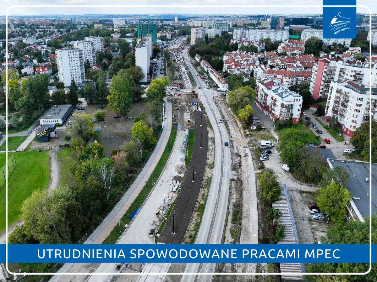 Due to the construction of a district heating network carried out by MPEC Kraków for the NOHO development, we inform that from October 24 to 26, temporary traffic disruptions may occur in the area of the entrance from Mogilska Street to Czyżyńska Street.