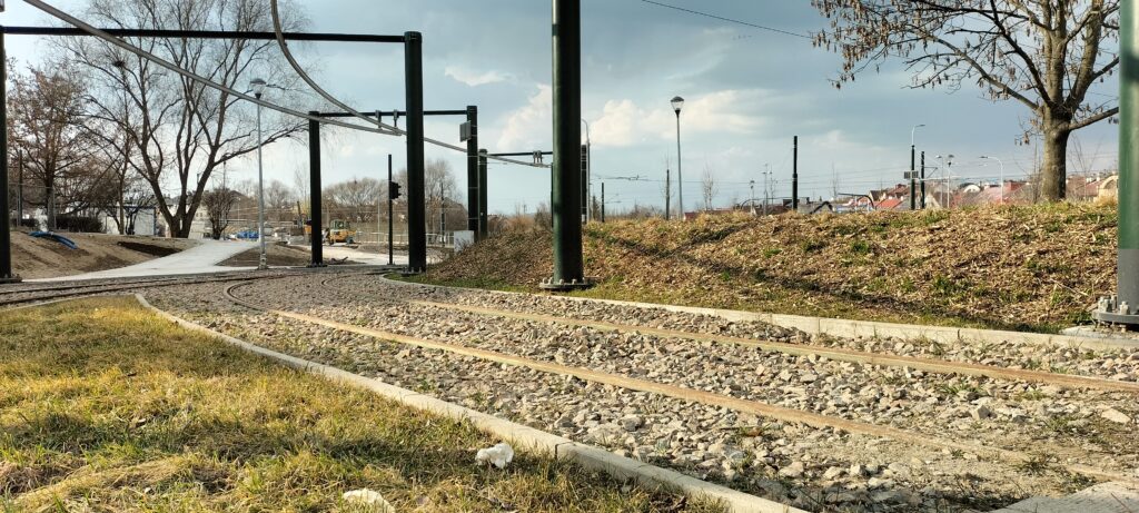 It has been designed to serve both directions – trams arriving from the existing line along Srebrnych Orłów Street and from the new line along Bohomolca Street. The loop now includes two stabling/departure tracks, where trams can wait before starting their route. In total, 1,013 meters of track have been installed.