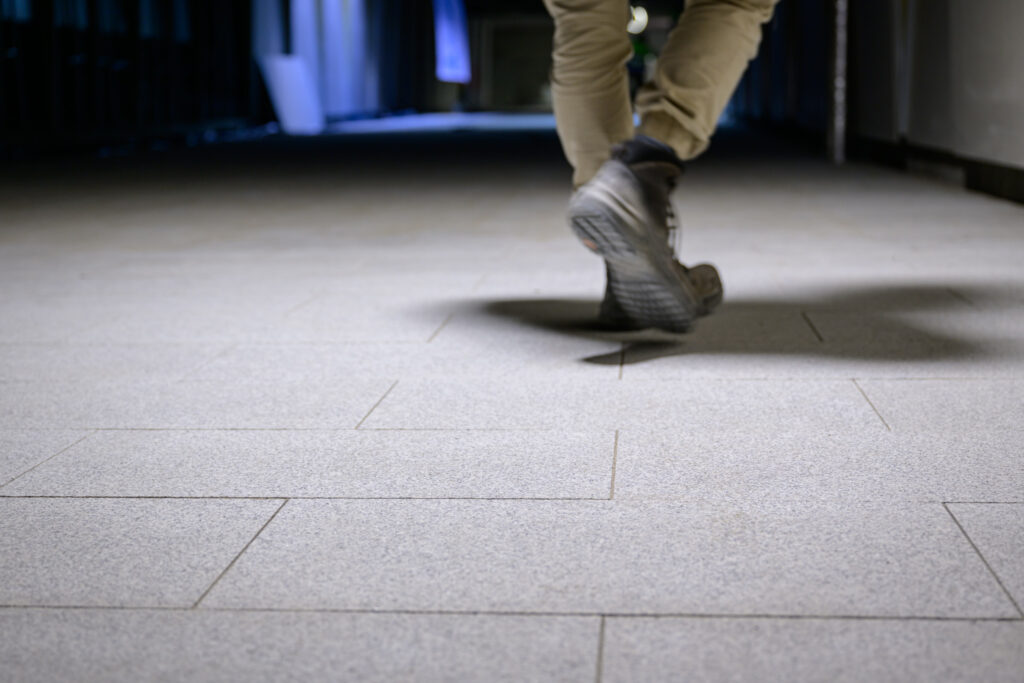 Na poziomie -1 trwają prace związane z układaniem granitowych posadzek. Docelowo położymy ich ponad 4500 m². Jest to materiał szczególnie dobrze sprawdzający się w przestrzeniach o dużym natężeniu ruchu – charakteryzuje się wysoką trwałością oraz odpornością na zarysowania, ścieranie i wilgoć. Dzięki obróbce termicznej zyskuje matową, antypoślizgową powierzchnię. Posadzki zostaną również dostosowane do potrzeb osób niewidomych i słabowidzących poprzez zastosowanie specjalnych fakturowych oznaczeń. Obecnie wykonaliśmy już około 5% zakresu.